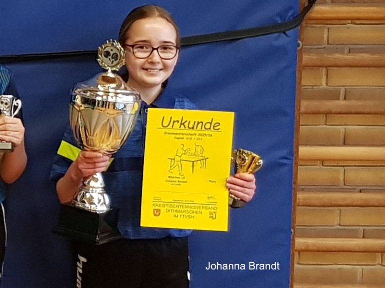 Am 24. Januar 2026 fanden in Wesselburen die Tischtennis-Kreismeisterschaften statt. Dabei sicherte sich Carolina Schröder bei den Mädchen U11 den Kreismeistertitel im Einzel. Johanna Brandt wurde Kreismeisterin bei den Starterinnen U13.